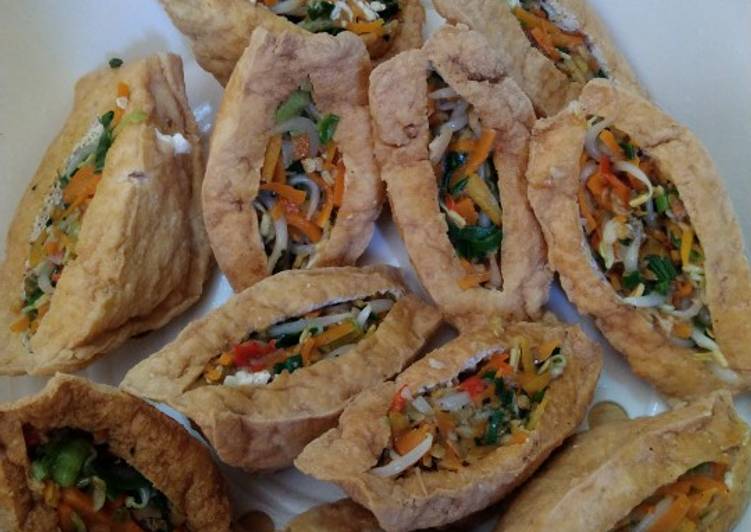 Tahu Isi Tauge Wortel : Tahu Isi Sayuran - Resep Kuliner Indonesia dan Dunia : Tahu isi ini memang sederhana membuat, tetapi kandungan gizi dalam tahu serta sayurannya masih berharga tinggi.. Renyah bagian kulit serta gurih isi sayuran tumis, hal inilah yang membuat salah satu racikan tahu ini menjadi kuliner yang diburu banyak orang. Isinya cuma wortel yang diserut atau diiris korek api. Tumis sebentar saja agar sayur tidak layu. Biasanya isi dari tahu tersebut adalah sayuran, telur atau daging yang dibuat sesuai selera sang pembuat. Kelezatan tahu yang lembut berpadu isian sehat berupa tauge, wortel, dan kol pastinya sayang sekali jika tidak dicoba.